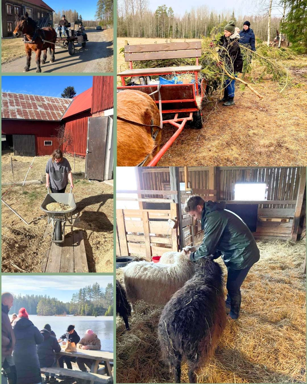 En av gruppbostäderna har ”djuransvar”, vilket innebär att man ser om djuren under kvällen. Hästarna ska tas in för natten och alla djur ska ha foder, vatten och lite ompyssling.